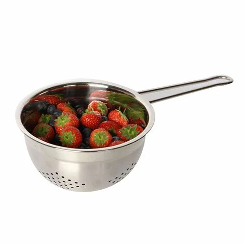 This 18cm dia stainless steel colander with a brushed interior is perfect for draining vegetables and pastas. The long handle is perfect for tipping and draining with ease when serving.