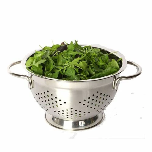 This 22cm dia stainless steel footed colander with a brushed interior is perfect for draining vegetables and pastas.