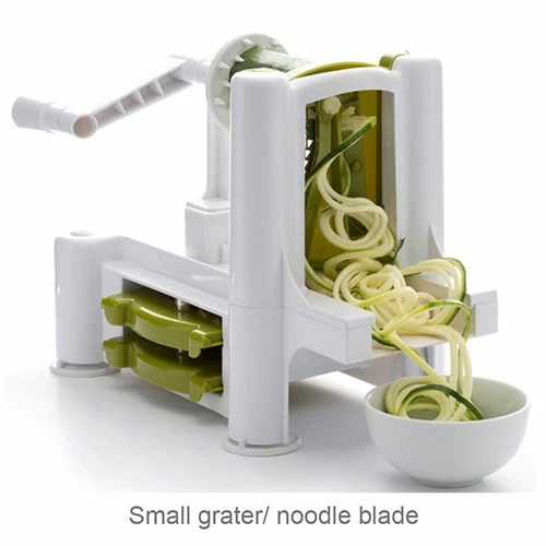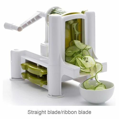 The Dexam Spiralizer includes 3 stay sharp stainless steel blades that are easy accessible and neatly stored below the spiralizer.