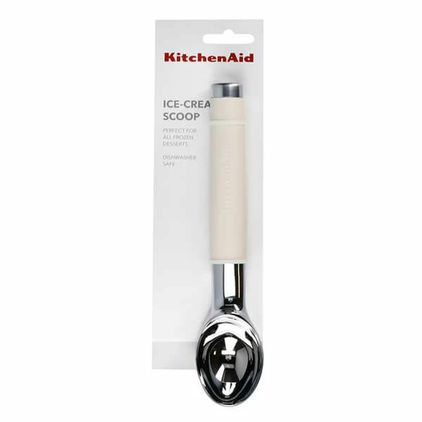 Crafted from premium grade materials, this KitchenAid Stainless Steel Ice Cream Scoop in Almond Cream is ideal for serving all types of frozen desserts. The robust cast zinc head features a gently pointed tip to make serving even the hardest of ice cream quick and easy. The glossy handle includes a debossed logo and a satin chrome-plated bolster.