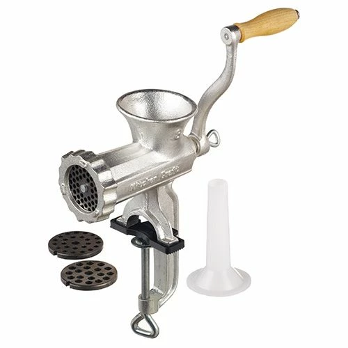 The Italian Collection large Cast Iron Mincer is ideal for making your own mince from prime cuts of meat. Includes three discs for different sized mincing, a sausage making attachment and screw clamp fittings for a secure hold whilst in use.