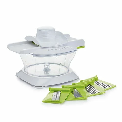 The processor can juice citrus fruits, the spinner can dry salad in seconds, onions can be diced quickly. The processor also includes a mixer ideal for eggs and sauces.