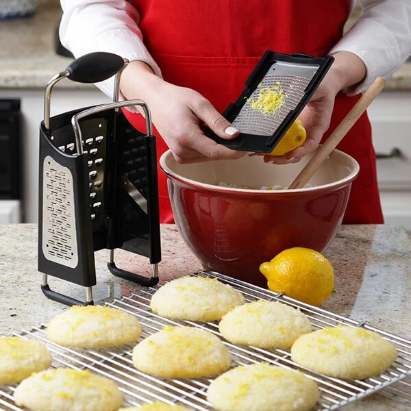Sleek and efficient, this all-in-one box grater lives up to the Microplane name. It combines the most sought after Microplane Grating blades – Medium Ribbon, Extra Coarse, a slicer and a removable Fine/Zester in to one stylishly crafted, extremely versatile kitchen tool.