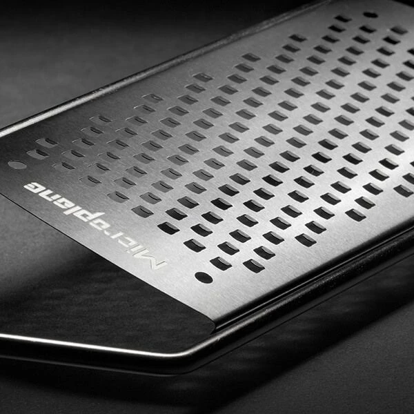 Microplane’s patented, long-lasting, razor sharp, non-clogging cutting edges. Cuts food without ripping, tearing or shredding which preserves and intensifies aroma and flavour.