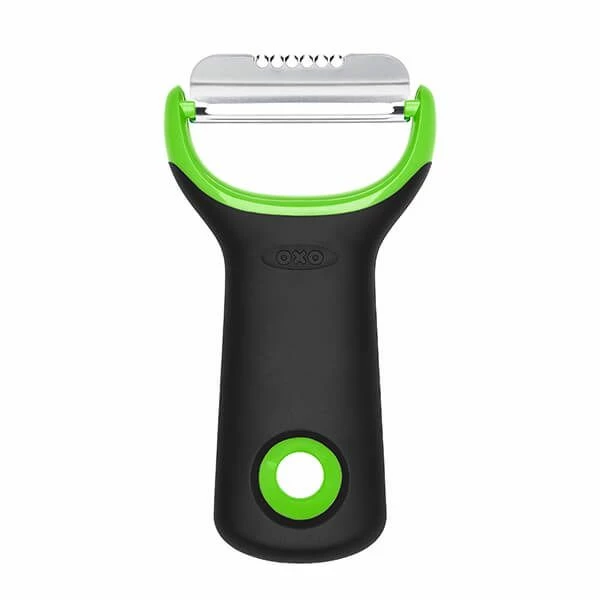 Effortlessly peel and zest citrus fruits with the OXO Good Grips Citrus Prep Peeler & Zester.
