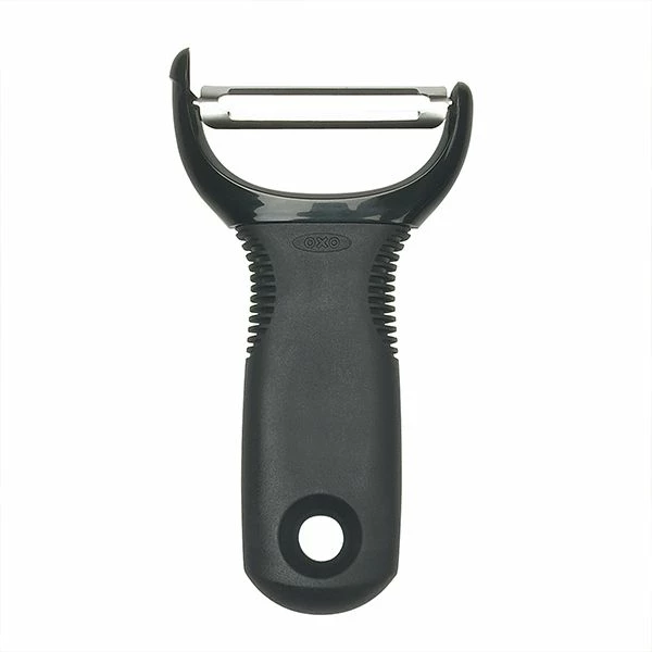 This OXO Good Grips Y Peeler has a sharp, stainless steel blade that glides through even the toughest fruit and vegetable skins with ease. Finished with a soft and comfortable handle that cushions your hand as you peel. Dishwasher safe. Dimensions 15.2cm x 7.6cm x 2.5cm.