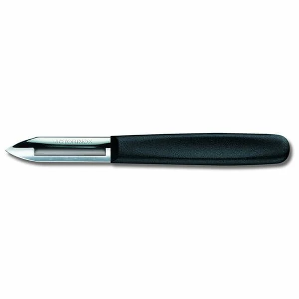 Make kitchen chores child’s play and peel your potatoes in no time with this handy Victorinox Black Potato Peeler. It’s got it all, The single blade peeler is made of stainless steel and features a pointed tip that’s excellent for removing potato eyes and bruised spots.